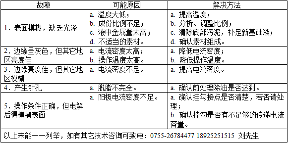 備注:不需加入任何其它添加劑即可使用(原液使用),適當(dāng)添加20-30%硫酸拋光效果會(huì)更佳。鈦板、鉛板或不銹鋼板做陰極(負(fù)極),工件做陽(yáng)極(正極),建議陽(yáng)級(jí)緩慢移動(dòng),并適當(dāng)攪拌避免局部過(guò)熱。溫度60℃為佳,工件體積大設(shè)計(jì)電流、電壓大,工作時(shí)間長(zhǎng)。
