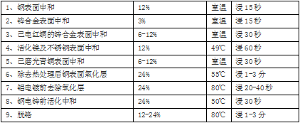 ②活化用途:除出金屬表面而氧化層,熱處理或焊接而產生的銹跡或鈍化膜,可加溫到55℃,加速活化。如較難除出的氧化膜,可用陰極電解法或PR法。